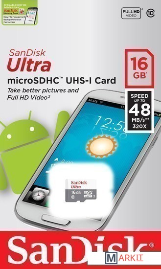 Markit » Карты памяти » Карта памяти SanDisk Ultra microSDHC 16Gb Class 10 (SDSQUNB-016G-GN3MN)